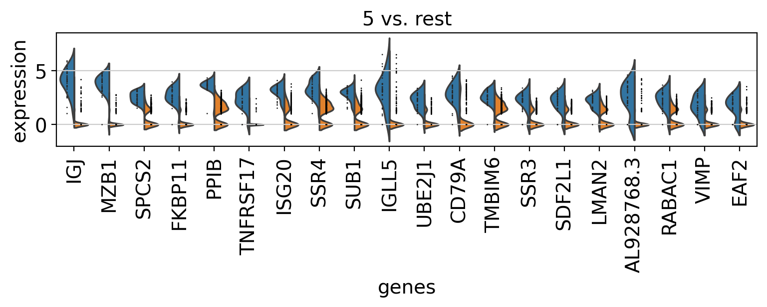 sc.tl.rank_genes_groups(pbmc, groupby="clusters", method="wilcoxon")